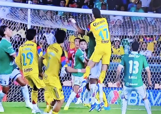 Al minuto 75 de juego el silbante César Arturo Ramos fue llamado por el VAR. En una incursión de las Águilas el mediovolante Dourado remató, pero el zaguero quien le estorbaba abrió demasiado los brazos desviando el balón para un penal que, aunque quisquillosos, sí está dentro del reglamento.