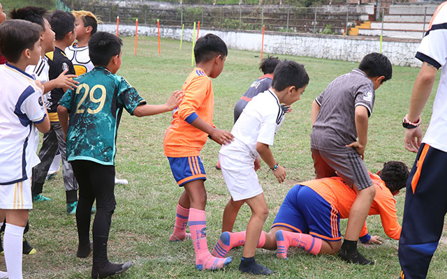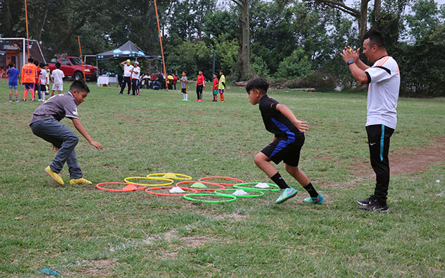 Un circuito de estaciones de diversos juegos y rutinas se instaló en la cancha dando paso al desbordante entusiasmo de los pequeños y de los entrenadores quienes animaron a sus respectivos grupos a darlo todo con fervor.