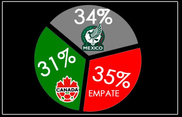 Por su parte Canadá ostenta el 31% de probabilidad de triunfo. Lo que resta del aproximado es un 35% de empate.