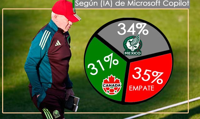 Según la inteligencia artificial de Microsoft Copilot, las probabilidades de triunfo para México sobre los canadienses son de 34 %.
