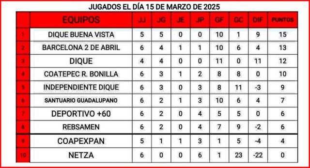 Finalmente Coatepec Bonilla y Barcelona 2 de Abril empataron 2-2, mientras que Dique Independiente se impuso 3-2 a Rébsamen.